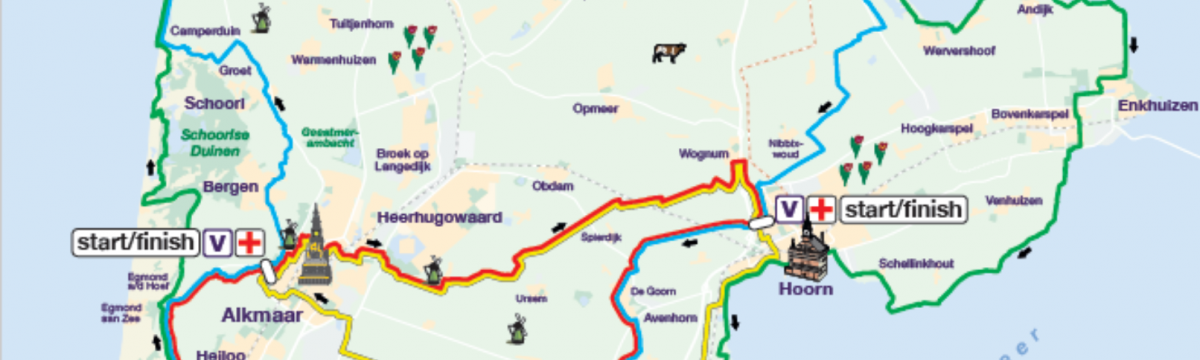 In 2026 fietsen wij mooie, deels vernieuwde, routes over 85, 110, 160 of 250 km. Je kunt starten in Alkmaar, Hoorn en Purmerend. Geniet op je gemak van de prachtige omgeving of ga samen met je fietsmaatjes voor een mooi tempo. Dankzij de drie verschillende startlocaties en de diverse starttijden, worden de deelnemers verspreid over de hele provincie.